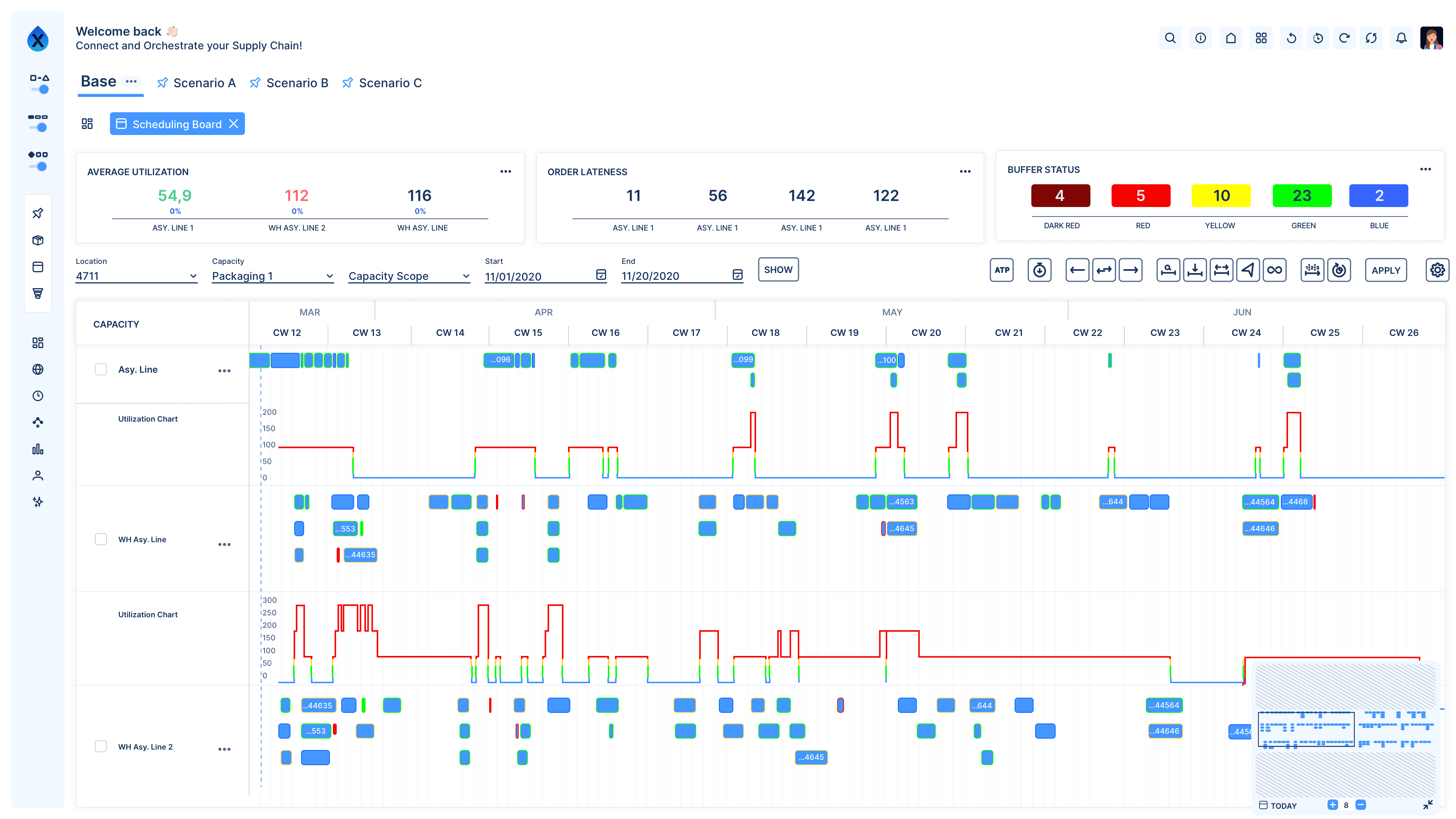 User-centric and process-specific visualization and alerting empower an easy and detailed planning analysis with all impacts upstream and downstream of the supply chain. Always know the effects of your scheduling activities for logistics and demand fulfillment.