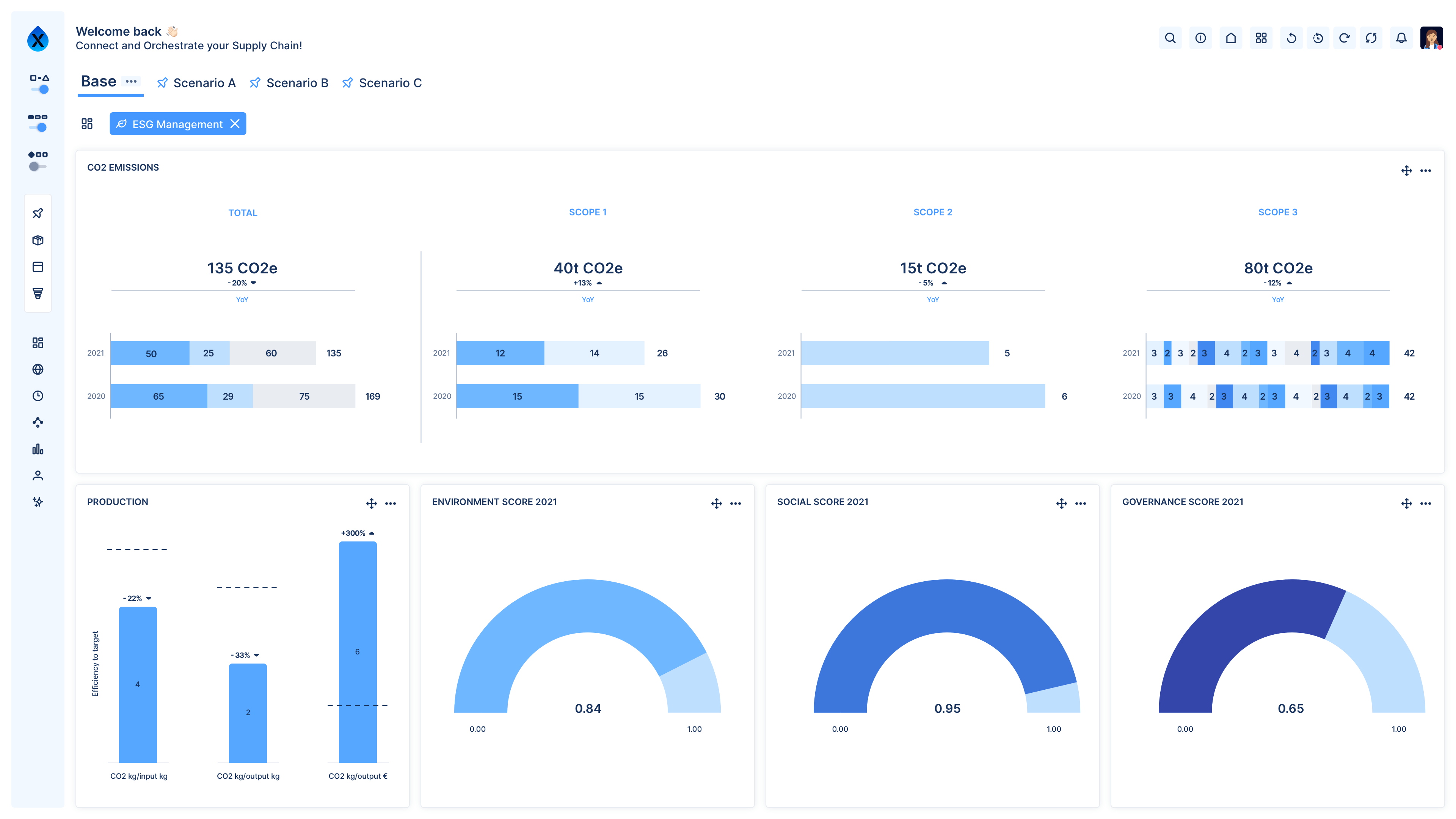 Avatar enables decision-makers to quantify and assess the impact of supply chain processes on ESG performance. It incorporates ESG criteria in the scenario evaluation to optimize supply networks and sourcing decisions.