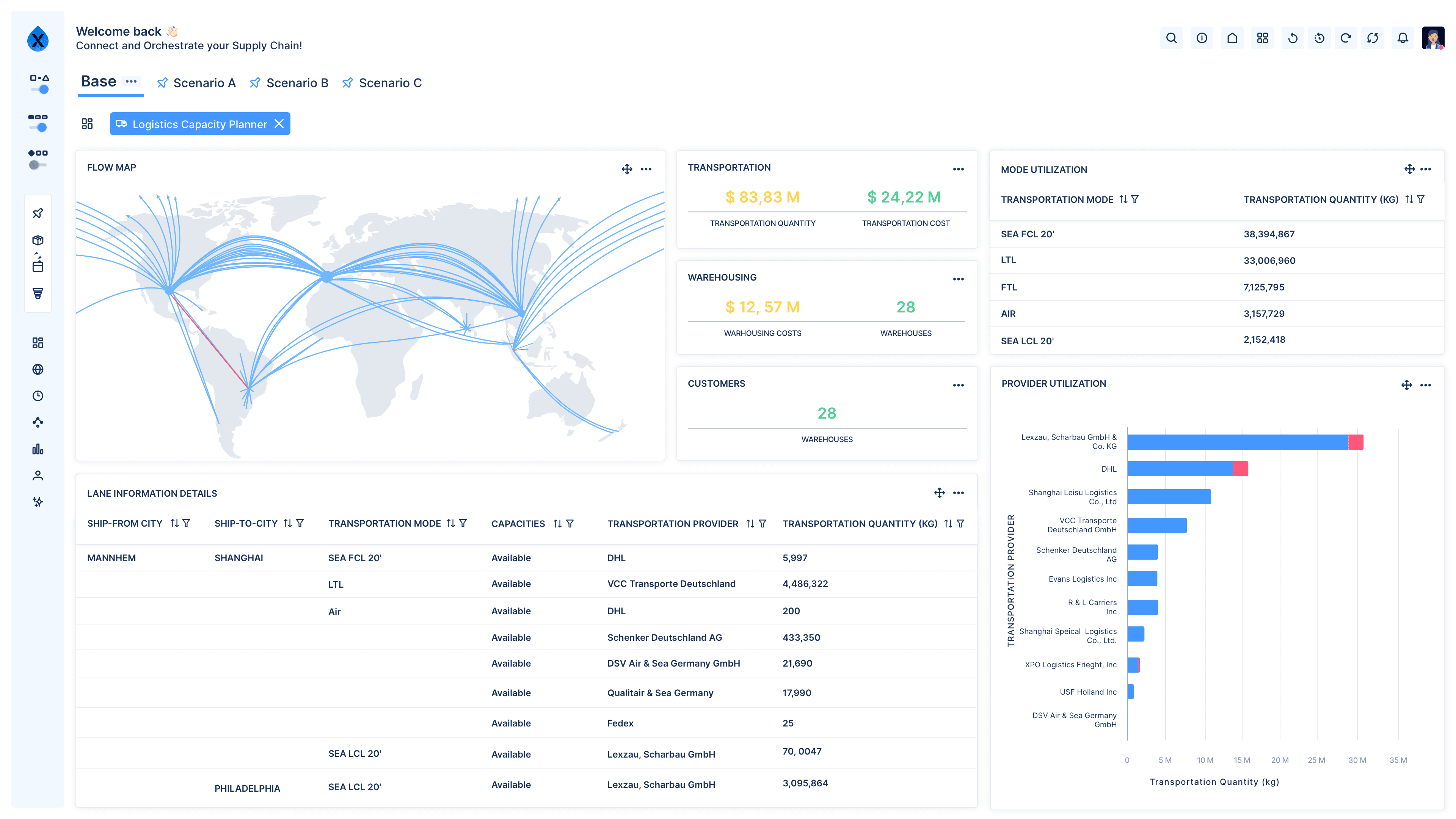 Benefit from end-to-end scenario capabilities to analyze potential logistics bottlenecks and devise remediation strategies as a solid base for decision-making.